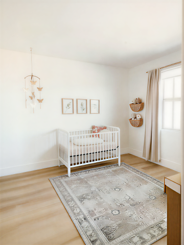 极简主义风格的儿童卧室,温暖柔和的原木色与米白色为主色调,自然光从侧面窗户洒落形成柔和的光影效果,细腻的木质纹理与编织质感的地毯和收纳篮,浅米色墙壁上挂着装饰画,不同形态和布置的木质家具(如带抽屉的储物柜、简约单人床),地面散落着不同尺寸的毛绒玩具熊,整体营造出温馨舒适、简约自然的氛围,干净整洁的空间布局,柔和的光线带来宁静惬意的感觉,不同布置的背景中保持原木色系与编织元素的统一风格。