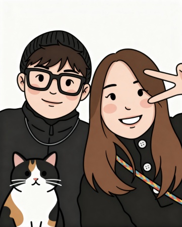 把每个人的照片进行轻微卡通化处理(保留五官特征,线条柔和),避免违和。