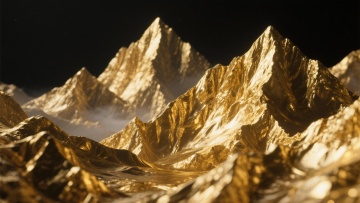 一张具有浓厚国风奢华感的金色背景图,主色调为金黄色,整体呈现出细腻的金箔质感,表面带有自然的纹理和光泽变化,仿佛是由真实的黄金箔片铺陈而成,同时巧妙融入了象征财富与尊贵的金山元素轮廓,通过光影的微妙处理增强立体感,整体画面在保持金箔材质特有的颗粒感和金属光泽的同时,营造出一种庄重而华丽的视觉效果,完美体现了国风设计中对金色的经典运用和奢华大气的审美追求。