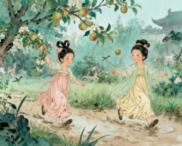 中式古典插画风,国潮元素融入,雪景中少女手握糖葫芦,唯美感与温馨感并存。