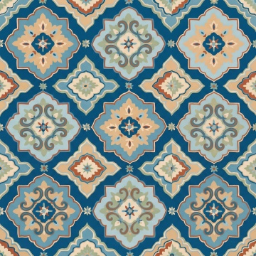精致的东方传统纹样无缝背景,以流畅的线条勾勒出变形的花卉、卷曲藤蔓与几何图案交织的对称式重复图案,整体造型在保持传统韵味基础上融入现代简约抽象感,色彩变换为靛蓝色与珊瑚粉的柔和渐变线条,在纯白色背景上形成典雅而富有层次感的连续纹样,线条粗细均匀,图案细节丰富且疏密有致,展现出细腻的装饰美学与和谐的视觉韵律。