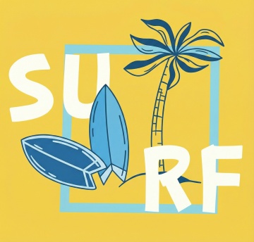 清新软3D风,卡通感海岛场景,椰树、躺椅与冲浪板,夏日度假氛围。