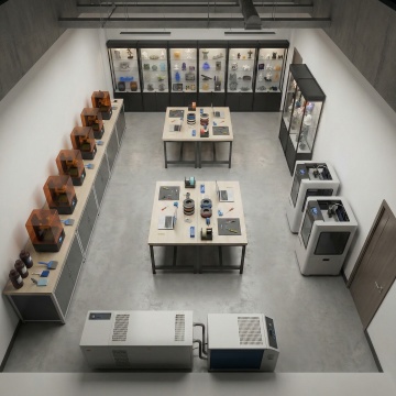 未来感与科技感交织的3D微缩艺术场景,几何形态搭配金属与玻璃材质,霓虹蓝光勾勒线条,营造商务风十足的数字空间。