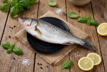 一条新鲜的三文鱼,身体呈流线型,背部为深蓝色,腹部银白色,鱼鳍和鱼尾边缘带有橙红色,鱼鳞细密有光泽,鱼头微微抬起,嘴巴自然闭合,眼睛明亮,整体姿态鲜活,悬浮在纯白色的纯色背景上,保持与原图相同的悬浮状态和构图布局,光线从上方照射,鱼身有明显的光影对比,突出鱼肉的质感和立体感。