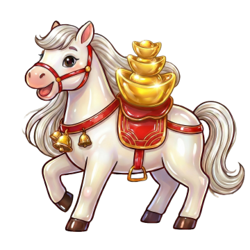 中国风新年海报主体,一匹健壮的金色骏马,鬃毛飞扬,四蹄踏祥云,身上点缀红色祥云纹与金色铜钱图案,背景是中式红墙、金色灯笼和绽放的烟花,色彩鲜艳喜庆,画面饱满大气,高清 8K,适合春节海报印刷。