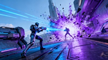 赛博朋克风动漫少女,霓虹光影交织,粒子雨中仰望未来,机能战衣闪耀梦幻科技感。