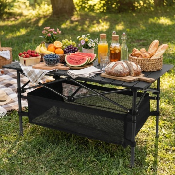 工业风户外灶具,金属质感搭配橙色点缀,科技感火焰显示与光影交织,展现现代机能美学与质朴野营场景的融合。