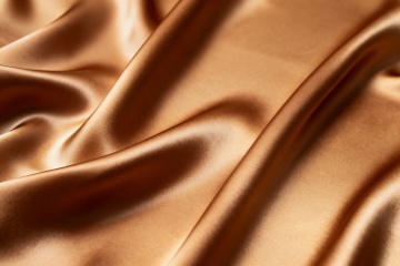 高品质丝绸面料特写,具有高度光泽感和细腻的纹理,呈现出自然流畅的波浪形褶皱,柔和的光影效果突显丝绸的柔软垂坠质感,整体画面简洁纯净,充满优雅奢华的氛围。