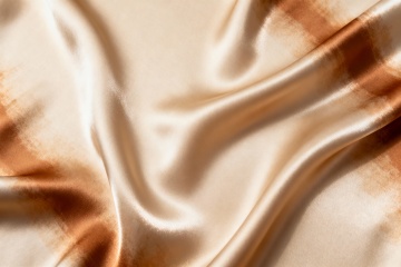 柔和的米黄色丝绸面料,细腻的纹理,自然垂坠的褶皱,温暖的自然光照射,呈现出柔和的光泽感,营造出优雅、舒适、高级的氛围,适合作为背景使用,整体画面简洁而富有质感。