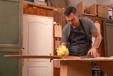 保持手套细节不变,分清正反面,一个外国帅哥穿着这双手套在工作