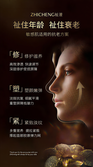 一张年轻女性手持护肤品、渐变紫色背景的美妆广告风格图片
