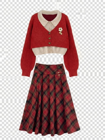 提取出图片中的上身外套和下身短裙,整体正面,变新,商业拍摄,有立体感,外套和短裤分开,白色背景