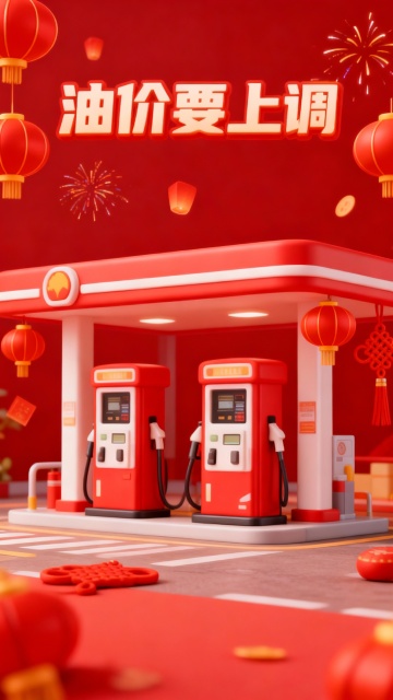 以中秋为主题,主体是巨型月饼造型的 “加油站”,月饼上写着“50元加油券”,内部有商店,加油机,油枪,加油机旁边有工人在给货车加油,司机在旁边休息看手机。标题文字“月满中秋”,副标题“千万油气补贴等你来拿”,场景设定为充满节日氛围的街道,有交通信号灯等元素。风格为 3D 卡通国潮风,色调以暖橙色为主,搭配月饼的金黄与加油站元素。采用竖版构图,视角为平视,突出场景的立体感与热闹感,细节上要体现月饼的