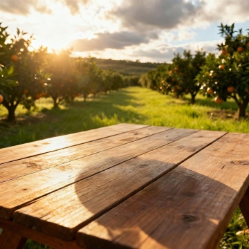 一张木质桌面特写,木纹清晰可见,表面有自然的光泽和细微的光影变化,桌面边缘略微圆润。背景变换为一个温馨雅致的居家客厅环境,柔和的暖黄色主调,光线从窗户透入形成柔和的光斑,远处有模糊的沙发轮廓和绿植点缀,整体氛围宁静舒适,保持原图那种浅景深、柔和对焦的写实摄影风格,突出木桌的质感同时营造出温馨惬意的居家氛围。