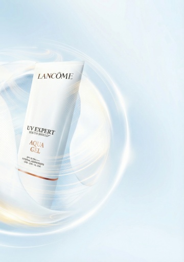 3D液态风设计,轻拟物泡沫环绕防晒瓶,简约主义呈现清爽、柔和、舒适与清透感,呼应夏日清新氛围。