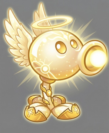 用给出的角色生成他们的进阶形态,光明神圣形态,卡通的画风,纯灰色背景