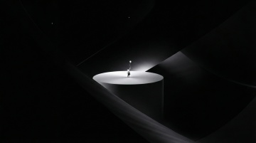 极简主义深色背景,顶部中央投射一道柔和的聚光灯,光线呈渐变状向下扩散,照亮底部平滑的深灰色平面,整体色调从纯黑到深灰自然过渡,营造出神秘而庄重的氛围,表面具有细腻的哑光质感,无任何文字和装饰元素。