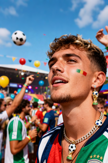 世界杯派对,户外,草坪,足球氛围,欧美漂亮女生,白皙,唯美清纯,脸部特写,潮流世界杯首饰,派对,热闹,气氛,大师级拍摄,礼炮彩带