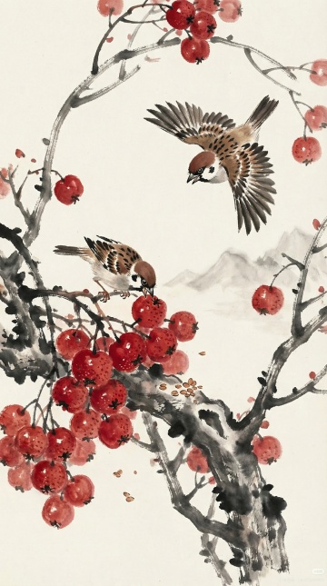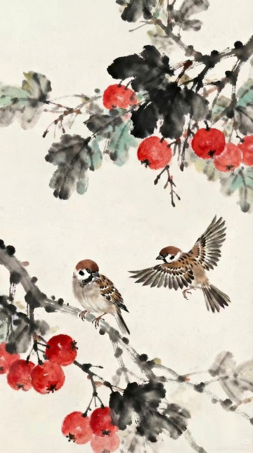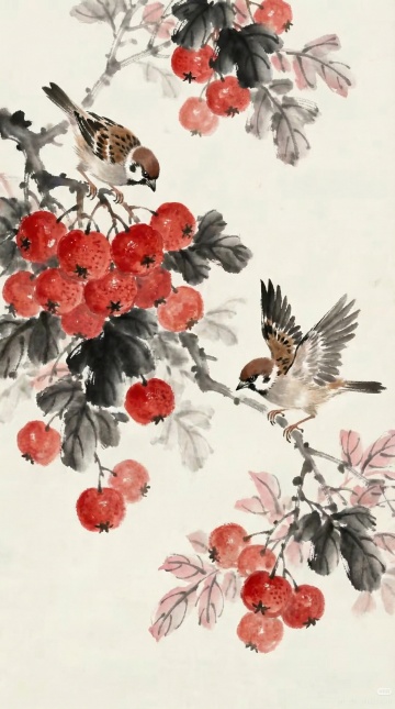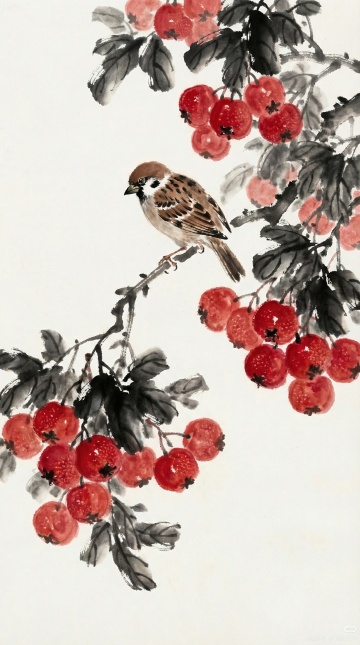 工笔重彩绘荔枝双鸟,水墨晕染间透出古典雅韵,水彩质感渲染果色鲜润,寓意丰收吉祥,尽显中式唯美意境。