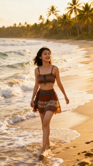 古典中式美人,红袍金绣,海边静谧,国潮风韵,水墨意境。