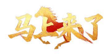 国潮风插画,卡通马身负金元宝,水墨描边勾勒动感,搭配“马上发财”书法,喜庆中式年味十足。