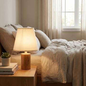 简约现代的书桌设计,温馨灯光营造舒适感,手账与书籍点缀文艺风,体现印刷风的精致细节。
