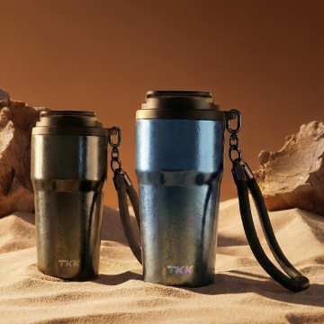 清新自然的户外场景中,四款简约金属质感保温杯以性冷淡风与轻拟物设计呈现,柔和色调搭配实景光影,传递舒适与高级感。