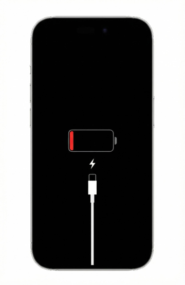 一张现代简约风格的手机充电状态展示图,居中放置一部亮黑色智能手机,屏幕点亮显示深黑色背景,中央有一个醒目的绿色圆形充电图标,图标内有白色闪电符号,背景伴有柔和的蓝色光晕和模糊的圆形渐变纹理,手机底部连接着一根白色的充电线,整体画面简洁、科技感十足,光影效果细腻,色彩对比鲜明,突出手机正在充电的核心状态,视觉焦点明确,信息传达清晰直观。