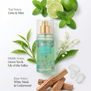 视觉优势:祖母绿透瓶 + 缤纷闪钻装饰 + 金色喷头,清爽少女感拉满;88ml 大容量揣进帆布包 / 化妆包无压力,补香时拿出来自带亮眼清新感。