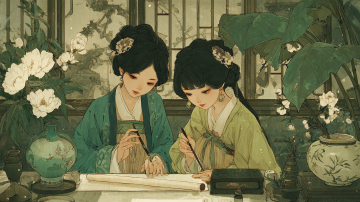 撕纸风与工笔风交融,古典中式美人破纸而出,水墨山水环绕,尽显优雅文艺之韵。