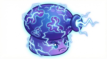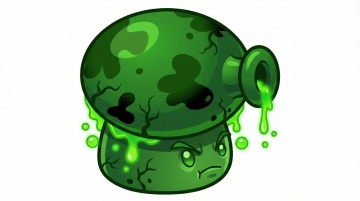 以这个植物角色为原型,生成不同变异的风格的属性形态,分别是暗黑、寒冰、烈火、剧毒、机械、雷电的风格,白色背景,横版,卡通的画风