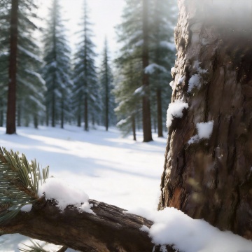 3D浮雕风雪松,重拟物质感,星夜背景营造静谧梦幻的虚拟自然之美,唯美感十足。