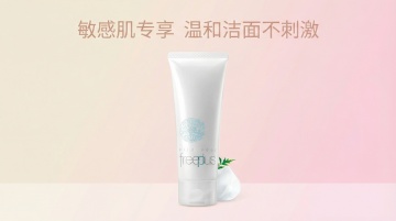 极简清冷写实风设计,浅蓝身体乳软管与斜角光影结合,营造干净治愈的护肤产品展示氛围