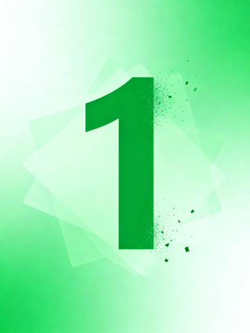 3D渲染的数字“1”,保持白色背景,主体采用深邃的蓝色渐变,从底部的深蓝色平滑过渡到顶部的浅蓝色,具有半透明的果冻质感,表面光滑且有明显的高光和细腻的阴影,边缘圆润,整体呈现出晶莹剔透的视觉效果,光线从左上方照射,在右侧形成柔和的阴影,立体感强,色彩纯净且过渡自然。