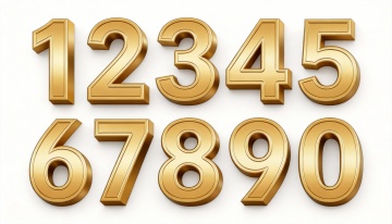 6个完全不同的金色3D立体数字(0、1、2、3、4、5),每个数字均具有光滑圆润的边缘、统一的金黄色金属质感、柔和的高光反射及底部自然阴影,整体呈现简洁现代的设计风格,以规整的网格状排布于纯白色纯色背景上,数字大小一致且间距均匀,无任何文字、LOGO及二维码元素。