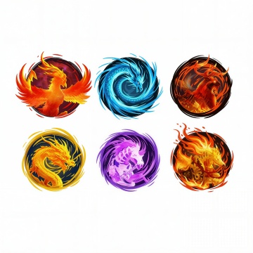插画风国潮设计,鎏金龙纹盾牌,火焰环绕,尽显神圣与威严。