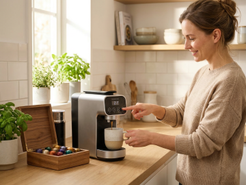 温暖晨光中的厨房场景,轻拟物风搭配简约主义设计,柔和色调与面料质感营造温馨舒适氛围,实景感十足,传递居家生活的宁静与惬意。