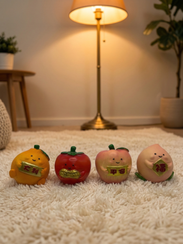 3D卡通风格柿子拟人形象,毛茸茸质感萌趣十足,可爱治愈,适合秋日节日主题设计。