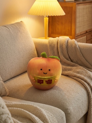 软3D风格的拟人化橙子玩偶,毛绒面料质感,卡通笑脸与萌趣小脚,温暖可爱,节日氛围十足。