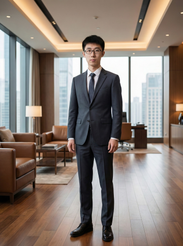商务感十足的性冷淡风肖像,简约主义构图,实景质感呈现,印刷风色调统一,凸显专业与沉稳。