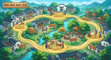 背景:靛蓝#1A365D(运河水面)+ 鎏金#DAA520(朝霞/皇家元素)渐变,模拟“清晨漕运启航”的光影氛围; 主体:赭石#8B5A2B(木质船体)+ 朱红#CD5C5C(龙舟装饰)+ 青绿#3CB371(两岸植被),体现盛唐的富丽与生机。 构图:全景式横向长卷(宽屏适配),画面中心为视觉焦点,向两侧延伸展现运河全貌: 中心(40%):隋炀帝龙舟(三层楼阁式,朱红#CD5C5C船身,鎏金#DA