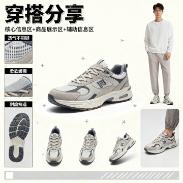 六双不同配色、不同样式、不同材质的时尚运动鞋,采用上下两行对齐排列的构图,每双鞋都具有清晰的细节和立体感,简约的浅色背景突出鞋款主体,整体呈现出电商产品展示图的干净、专业风格,光线柔和均匀,强调鞋子的材质纹理和设计细节,无任何文字、LOGO及二维码元素。