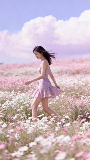 甜美清新风格,卡通动漫风少女与樱花相映,营造梦幻节日氛围。