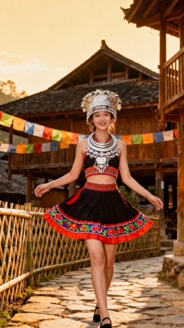 背景是层峦叠嶂的青绿色山脉,山间薄雾缭绕,远处田野呈现柔和的色块,阳光透过枝叶洒下斑驳的光影,整体色调温暖清新,画面充满丰收的治愈感