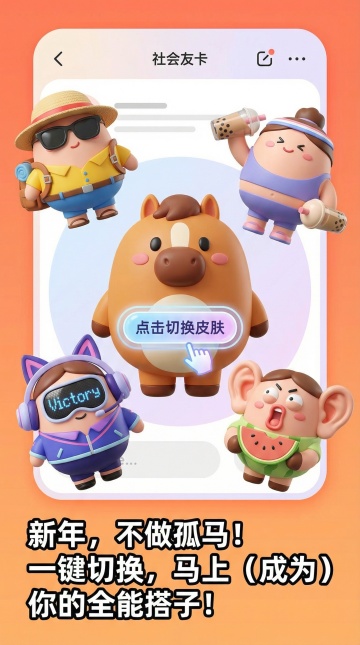 软3D风格的拟人化角色,萌趣十足,结合粘土质感与卡通设计,营造可爱趣味氛围。新年主题下,一键切换皮肤,化身全能搭子,充满节日互动感。