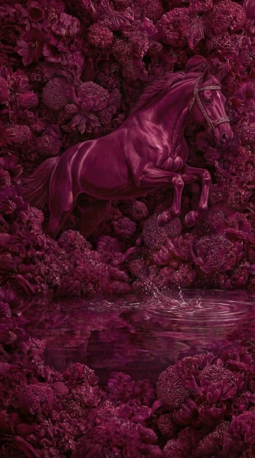 工笔与岩彩交融,鎏金勾勒骏马华纹,融合中式民族元素,喜庆祥瑞,尽显复古雅致。