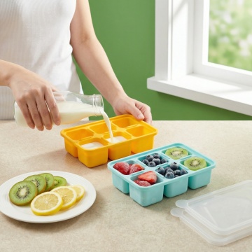 清新感十足的轻拟物风设计,塑料质感冰格搭配水果与牛奶,营造清爽舒适的生活场景,实景感强,传递夏日清凉氛围。