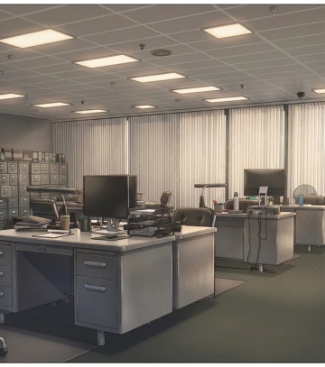 动漫风教室,水彩质感光影洒落,夕阳透过窗棂,书本静置桌头,温馨静谧,柔光弥漫,仿佛时光停驻。