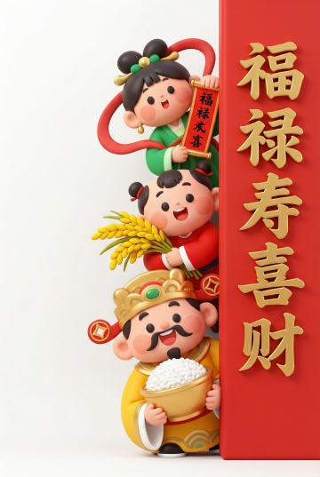 软3D毛绒质感融合刺绣风,国潮卡通锦鲤跃动喜庆红金配色,搭配毛发生长云纹与“招财进宝”字样,营造浓郁中式春节氛围。
