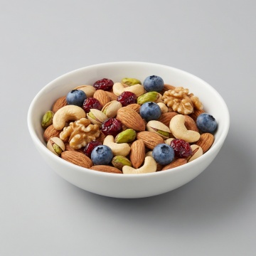 国潮风坚果礼盒,拟人化笑脸由坚果拼成,浮雕云纹点缀,喜庆红金配色,中式元素与现代创意融合,节日氛围浓厚。